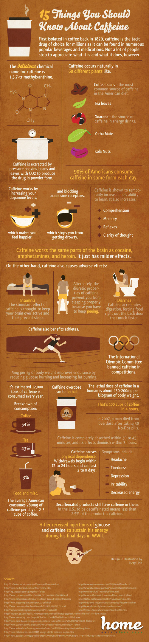 Many people in the world enjoy a daily cup or two of coffee. It perks us up in the morning and gets us ready to face the day. This is all thanks to caffeine, the premier legal drug. Although we enjoy it on a regular basis, many of us don’t know how it works. Here is an in-depth look at caffeine.