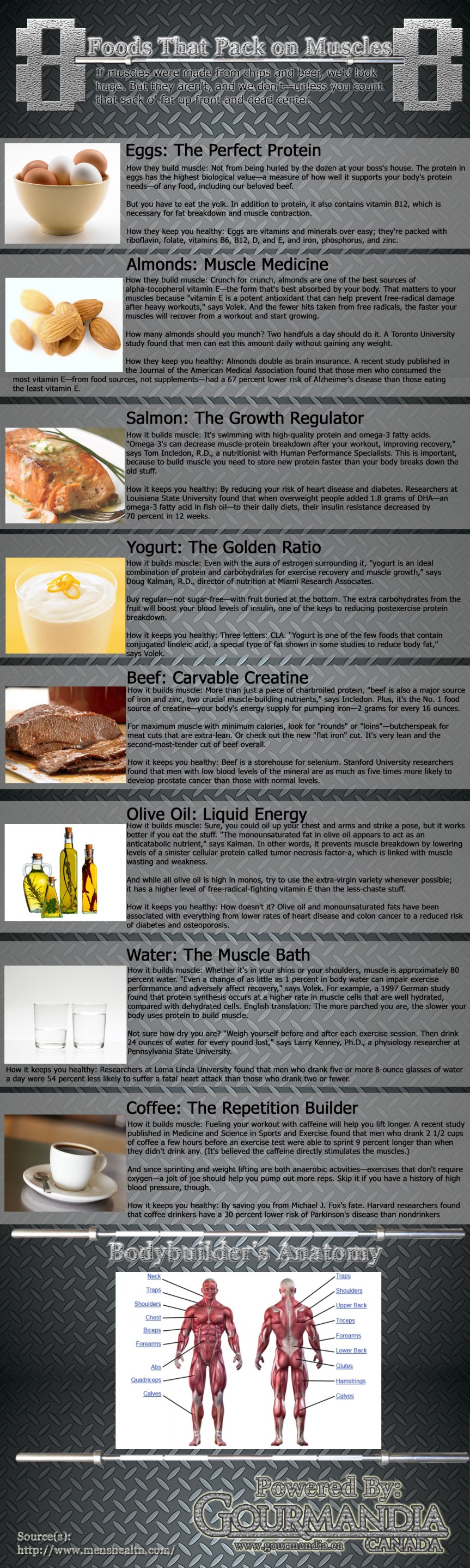 Just going to gym and lifting weights won’t be enough to pump up your muscles, proper diet and proper food also contributes a lot. Here are 8 foods that will help you get your desired figure.
