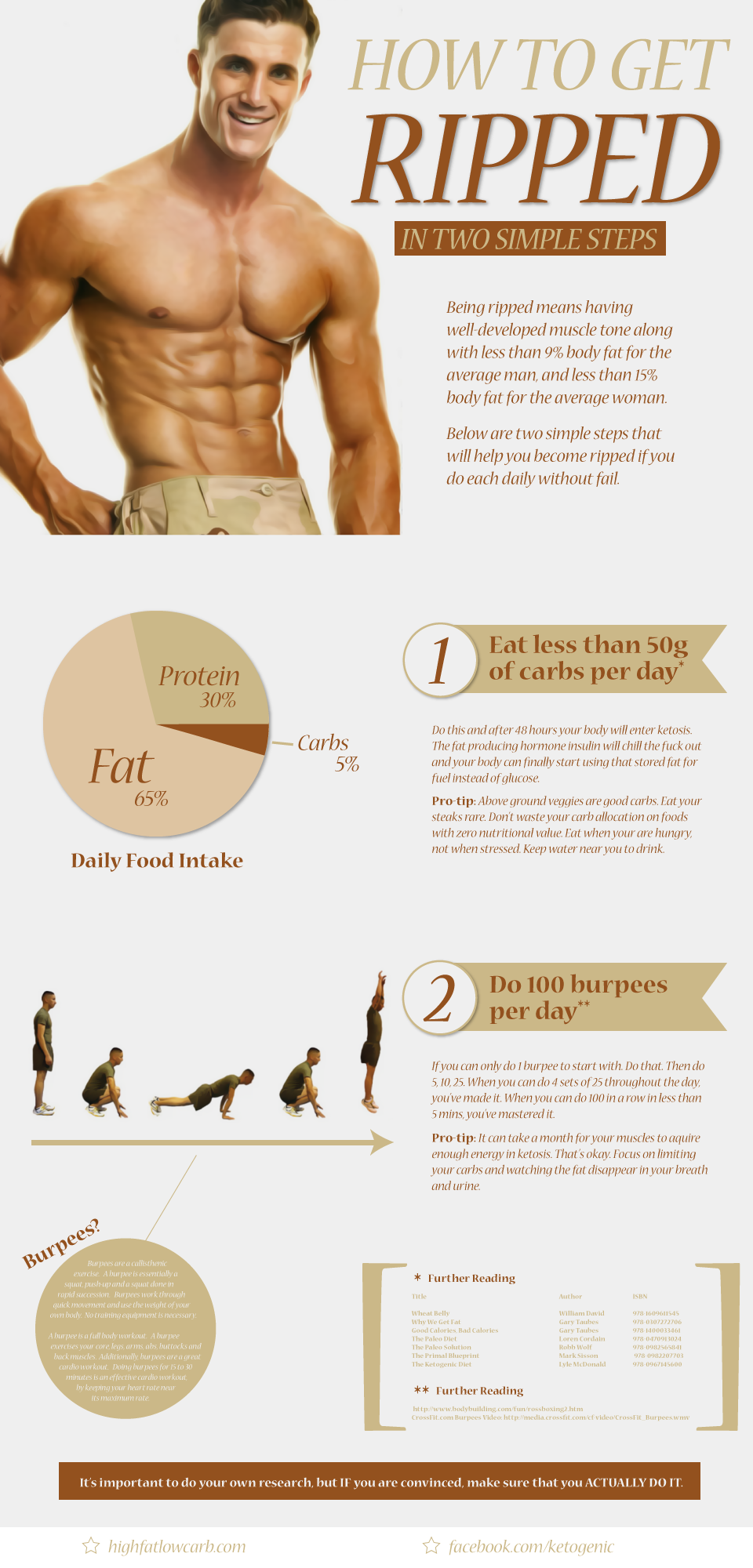 How To Get Ripped in Two Simple Steps For those of us with busy lives, here are two easy changes you can make to your life to obtain that coveted “ripped” body. View Full Size Infographic Source: Unavailable – Contact to claim source Share this: Click to share on X (Opens in new window) X Click to share on Facebook (Opens in new window) Facebook Like Loading... Related