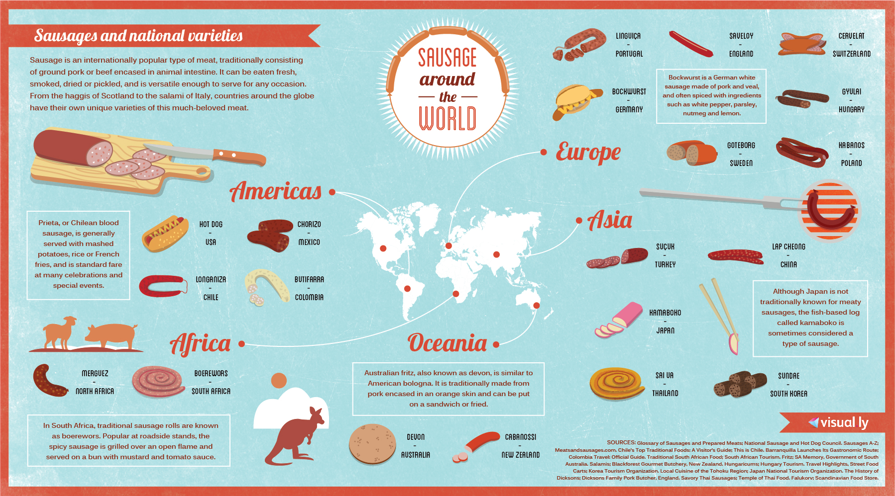 Sausage is an internationally popular type of meat, traditionally consisting of ground pork or beef encased in animal intestine. It can be eaten fresh, smoked, dried or pickled, and is versatile enough to serve for any occasion.