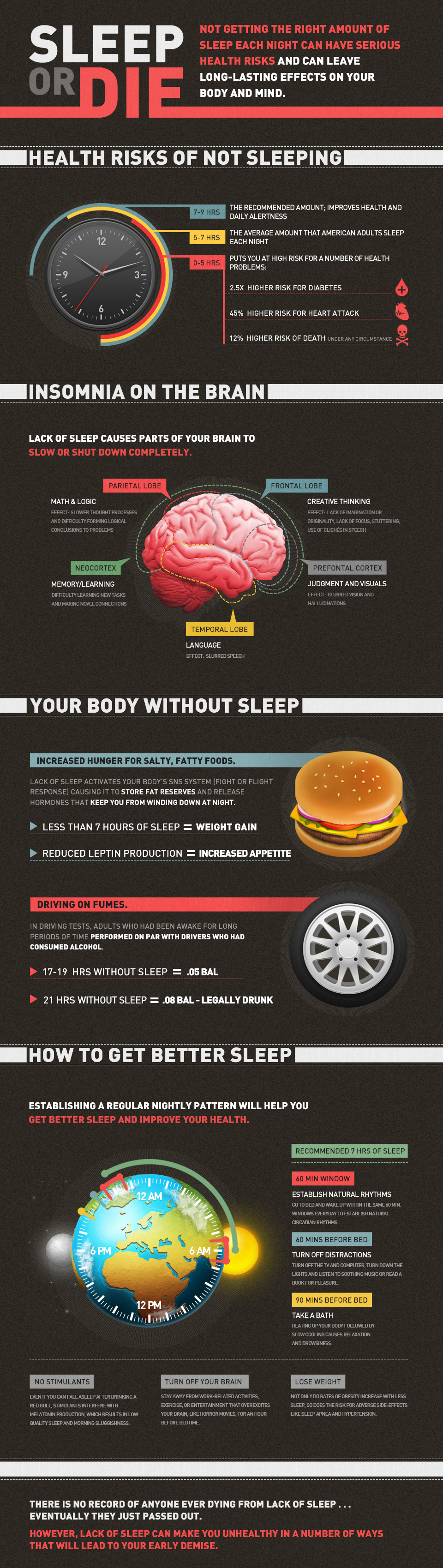 Sleep or Die A graphic explaining the health benefits of sleep – and how it can effect your everyday life and your lifespan. View Full Size Infographic Source: Unavailable – Contact to claim source Share this: Click to share on X (Opens in new window) X Click to share on Facebook (Opens in new window) Facebook Like Loading... Related
