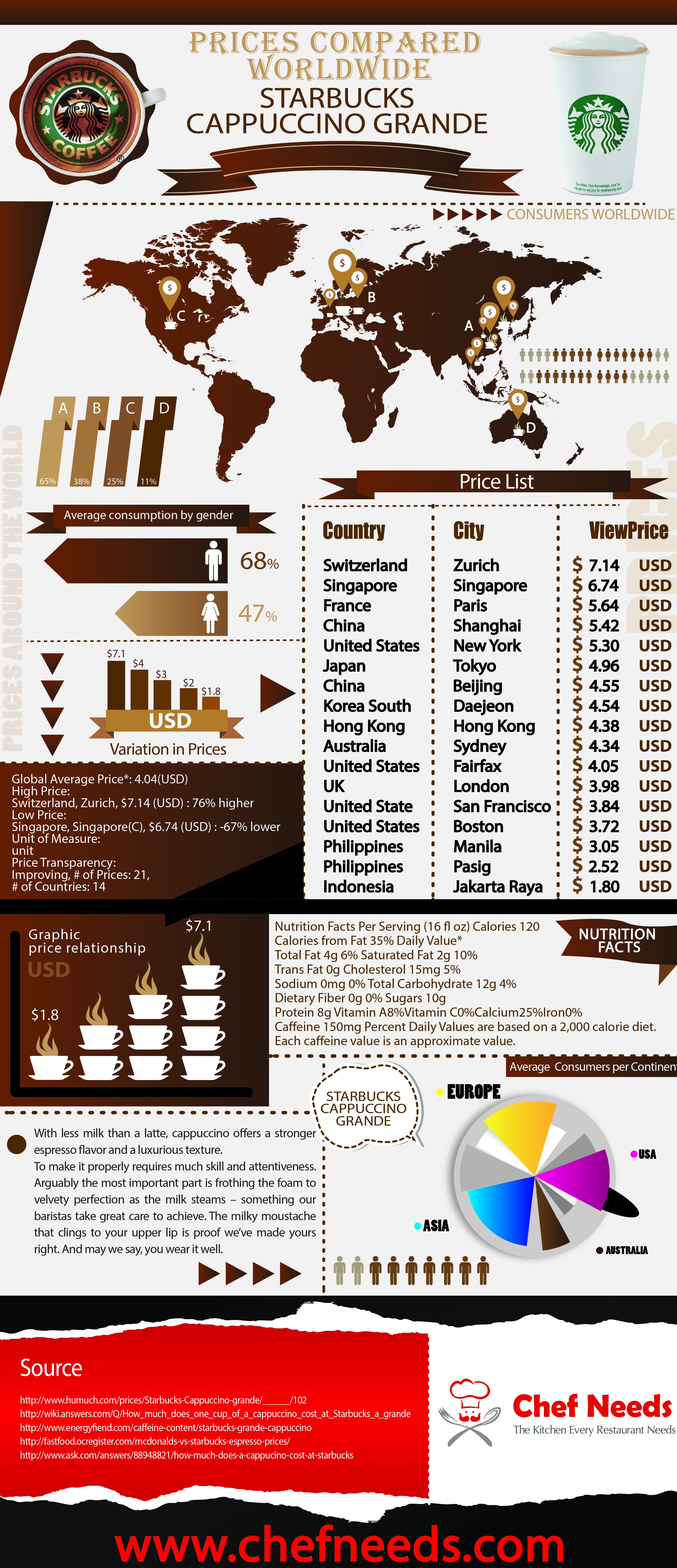 We did this infographic on the comparison of prices around the world on the the cappuccino grande by starbucks