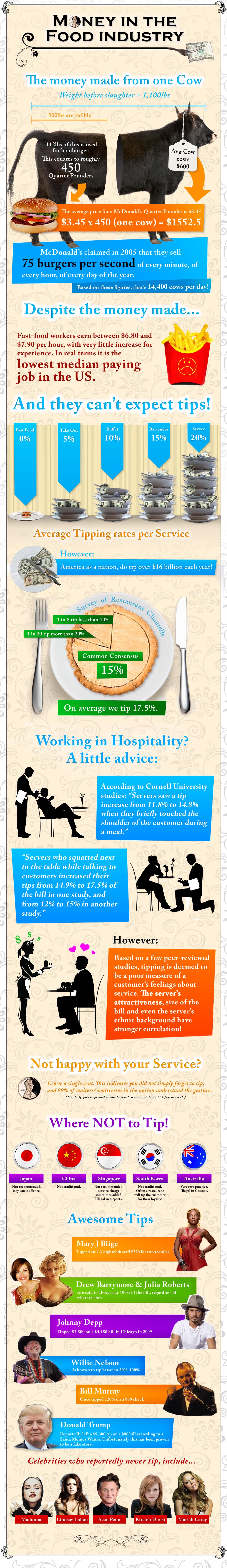 How much does the average American tip? How much does the average Julian Roberts tip? In which countries is it considered taboo to tip? And inexplicably topping the rest of these gratuity stats: how much does McDonalds make off of a cow?