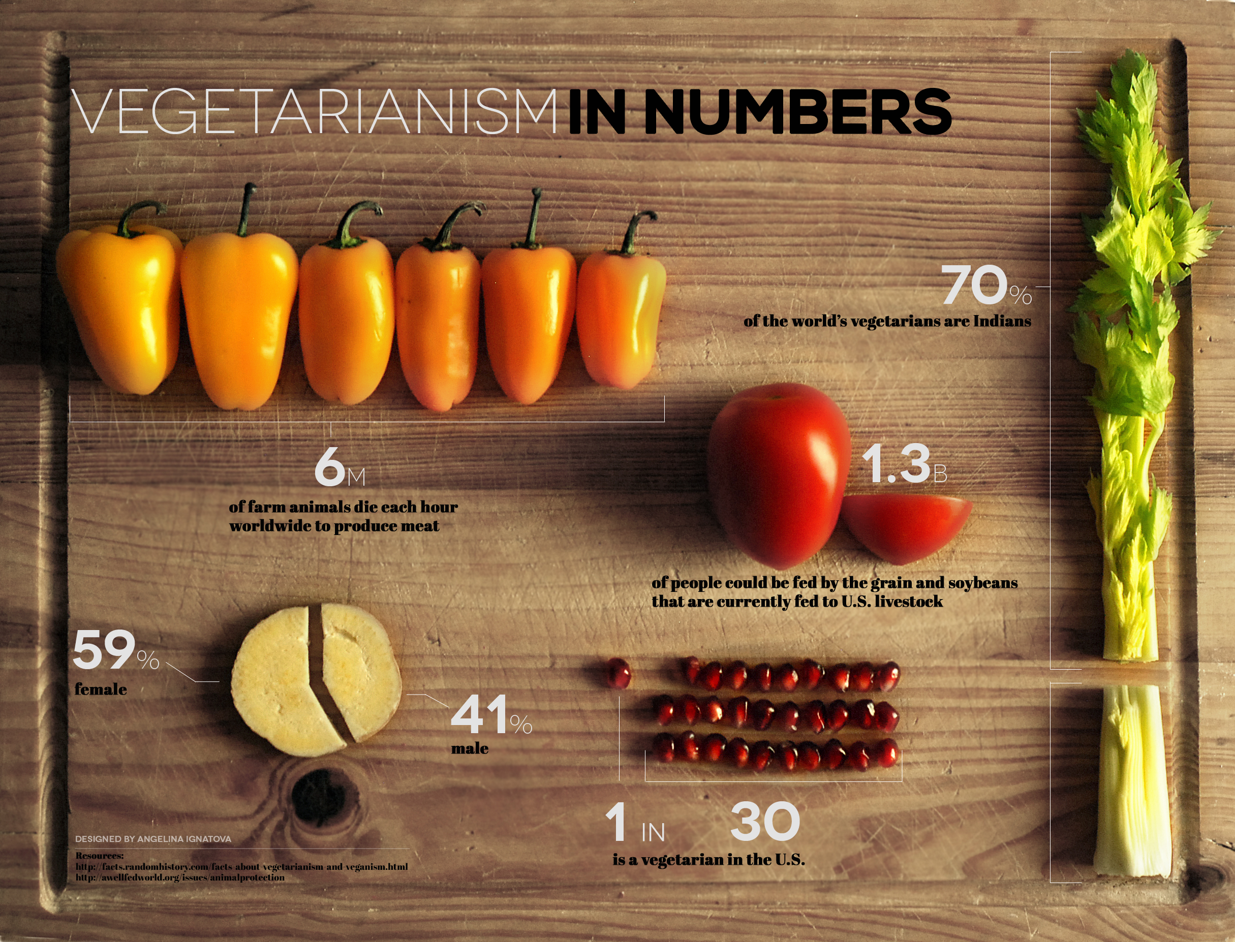 This graphics is showing just few of major facts about vegetarian diet and meat consumption.