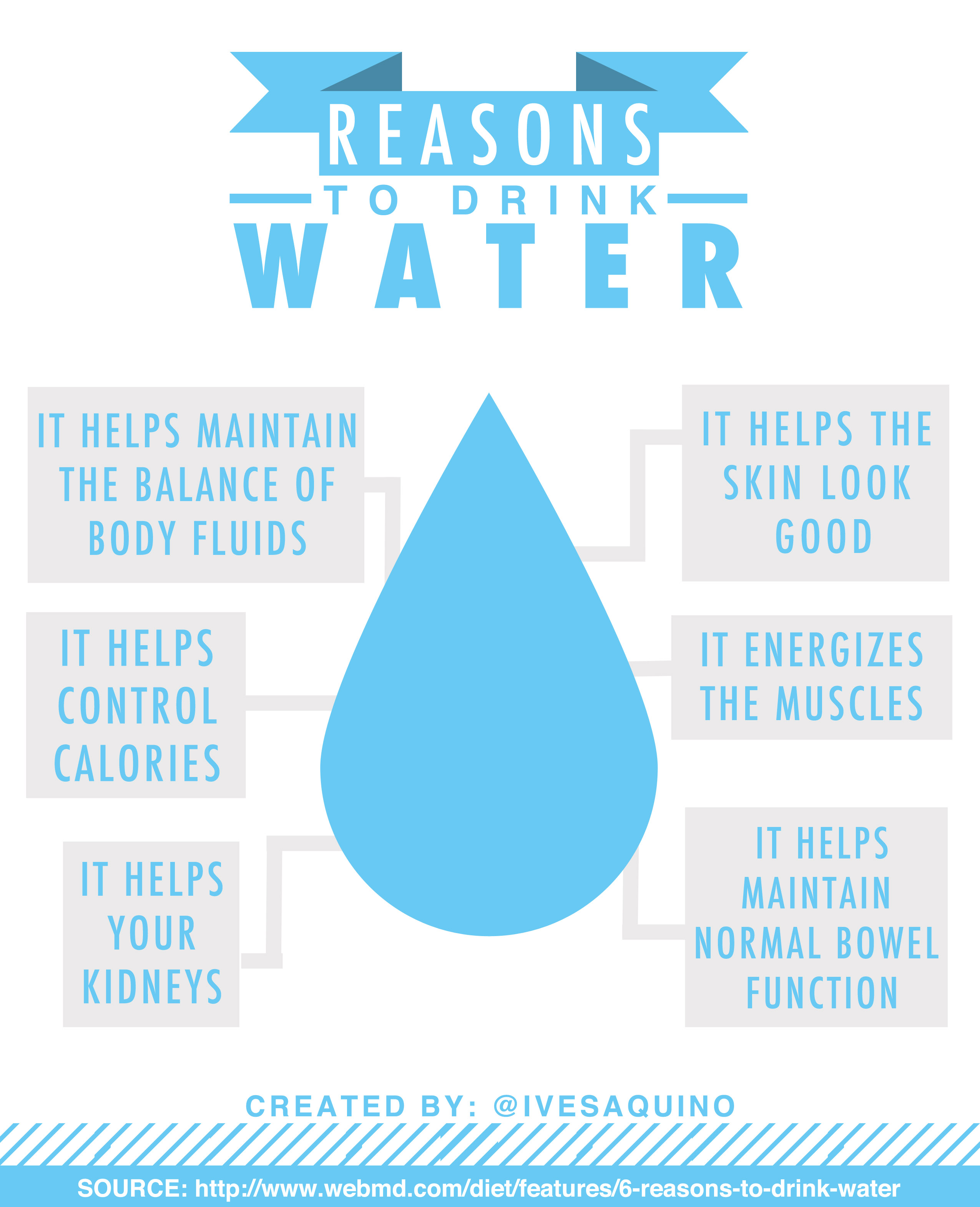 Here are some of the reasons why we should always drink water. (Trivia: While making this infographic, I’ve had about 4 glasses of water)
